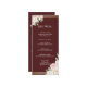 Este espantoso Cartão de Menu de Casamento de Sangue Rosa e Branco Dusky Branca combina facilmente elegância do eterno com beleza floral, fazer-o como a adição perfeita ao seu decoro do dia do casamento. Apresentando uma delicada borda dourada, este cartão de menu mostra rosas pias e brancas macios, cor-de-rosa, moldando graciosamente o texto em cima e em baixo. Disponível em três opções clássicas de segundo plano — preto, vermelho e verde — ele se encaixa perfeitamente com qualquer tema de casamento. Ideal para guiar seus hóspedes através das delícias culinárias de sua celebração, este cartão de menu adiciona um toque de sofisticação e encanto à sua mesa, deixando uma impressão duradoura no seu dia especial.