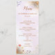 Aprecie seus convidados com nosso Elegante Menu de Casamento Rosa de Flor Branca. Com um incrível pano de fundo cor-de-rosa adornado com flores silvestres e sotaques simulados de ouro rosa, este menu complementa perfeitamente o tema do seu casamento de primavera ou verão. O boho rústico e o design boêmico vintage adicionam um toque de elegância e charme, fazer sua experiência de jantar ainda mais especial. Personalize com as seleções de menu para criar uma aparência bela e coesa para a sua recepção de casamento.