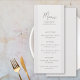 O menu plano clássico oferece uma maneira rápida e fácil de criar o seu próprio menu para o seu casamento. Opção de excelente para o seu dia de celebração. Este menu plano clássico apresenta um design simples e neutro. Altere o texto para atender às suas necessidades. Use a modelo para criar seu próprio menu clássico de casamento.
