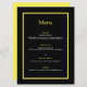 Cardápio de casamento preto, amarelo e branco. Comemore com estilo luxuoso com toda esta elegante coleção, ela irá adicionar um toque espantoso ao seu evento. Partes desta coleção podem ser personalizadas. Esta coleção é personalizável. Aproveite a sua celebração, animado!