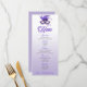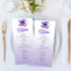 Este é um menu de festa de aniversário com tema Mascarada Ball Roxo. máscaras roxas mascarada dia a dia celebração comida dia entree aperitivo penas brancas 18º 19º 20 21rua 22º 23º 24º 25 27º 28º 29º 30 40º 50º 60º 70 80 90 100th Mardi Gras