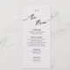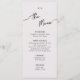 Menu plano para Boho Wedding. Pastéis elegantes combinados com design minimalista e toques pessoais criam uma atmosfera sofisticada mas formal.