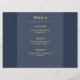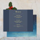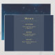 Menu plano personalizado blue gold. Frente azul e dourada com estrelas majestosas no verso. Personalize o texto na frente e no verso do menu. Ótimos suprimentos para festas para seu evento empresarial, gala, festa de Natal e mais. Parte da coleção de design Christmas Star. Use o modelo para criar seu próprio menu azul e dourado.