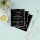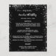 Por favor, note que este menu está no papel folheto e muito fino. Para menus mais espessos (mesmo design) visite nossa loja. Um menu elegante e glamouroso. Um fundo preto, decorado com falso brilho prateado, faíscas. Texto branco. Personalize e adicione seu nome, datas e o menu. Você pode adicionar mais texto, fotos no verso.