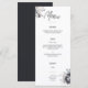Apresente sua cozinha de chá de panela com nosso 'Menu Floral Negro'. Criado com um elegante design floral preto, este menu adiciona um toque de sofisticação à sua experiência de jantar, descrevendo lindamente sua seleção curada de pratos.