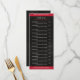 Folheto em vermelho preto, bom para restaurantes, serviço de entrega de comidas. Basta editar seu produto digitando seu texto. Você pode selecionar a fonte, a cor e a posição individualmente por "mais personalização".