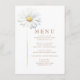Esse cardápio, graciosamente enfeitado por uma flor margarida branca e de cor-d-água, encapsula a atração do design minimalista, sinfonia visual de simplicidade e elegância. A grandiosidade subestimada da margarida, símbolo de pureza e inocência, acrescenta um toque de serenidade botânica à apresentação. O apelo da carta é ainda ampliado pela tipografia sutil e na moda, tecendo uma lindíssima tapeçaria que é tão agradável para o olho como as prometidas obras-primas culinárias estão para o paladar. Colocada contra um pano de fundo de branco pristino, a canvas do cartão ecoa a pureza e a simplicidade. Este cenário é personalizável, oferecendo a flexibilidade para ressonar com o tema do seu evento ou a ambição do seu cenário de jantar. Isto não é apenas um cardápio; é um portal para um banquete memorável, onde a elegância visual dos casados design o prazer sensorial da culinária, guiado pelo charme persistente da margarida branca.