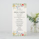 Este carinhoso cardápio de casamento é a maneira perfeita de apresentar seus convidados ao delicioso banquete que os aguarda! Apresentando uma bela borda de flores silvestres primavera, este menu certamente adiciona um toque da natureza à sua recepção de casamento. A design simples e elegante é personalizada com seu nome e data de casamento.