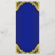 Cardápio Príncipe chá de fraldas com linda coroa azul real e dourada sobre um elegante fundo azul real e espiral dourado. Esses menus reais de chá de fraldas azul e ouro são facilmente personalizados para seu evento simplesmente adicionando seus detalhes no estilo de fonte que você preferir.