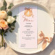 Adicione um toque charmoso de outono ao seu chá de fraldas com este elegante cartão de menu temático "A Little Pumpkin Is On Her Way". Apresentando uma abóbora de pêssego pintada manualmente amarrada com uma fita rosa macia, esta modelo de menu vertical complementa perfeitamente uma celebração de chá de fraldas de queda. Com a letra na moda e uma paleta quente neutra, é ideal para exibir seu delicioso início, curso principal e sobremesa no estilo. Personalize facilmente para corresponder aos detalhes do evento. Perfeito para chás de fraldas de outono, coletores temáticos de colheita, ou tijolos de Ação de Graças honrando um pouco no caminho! Comemore o amor, a comida, e a vinda da sua abóbora da forma mais doce com este cartão de cardápio de outono saboroso.