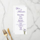 Este menu é coordenado com uma gama de papéis de carta e suprimentos de casamento Purple e Blue Iris Watercolor. É mínimo, simples e elegante com um toque de arte e pode ser personalizado com os nomes de noiva e noiva, tipo de comemoração/menu e até quatro cursos com seleções. Também está disponível como um conselho de formulário.
