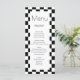 Um menu clássico com os seus detalhes rodeados por uma imagem em branco e preto. Você pode personalizá-lo com o link personalizar. Esta é parte de uma coleção de casamentos de chic com um convite correspondente, envelope, cartões de lugar, guardanapos e muitos outros itens.