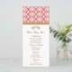 Clique no botão personalizar para começar a personalizar esta elegante e bela placa de menu inspirada por marroquino francês com uma repetida foqusia rosa-quente e um padrão geométrico dourado design e floresces florais dourados abarrotados. Este cartão de menu luxo e em escala superior é perfeito para qualquer chá de panela formal, exótica, marroquina, árabe, ou aladino, casamento, chá de fraldas, chá de casais, noivado ou festa de aniversário. A parte de trás pode ser personalizada com o nome do evento. Trabalho de arte e design © Chrissy H. Studios, LLC. Todos os Direitos Reservados.