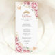 Cartão de menu fino para celebração de Quinceanera, cor-de-rosa, ouro e branco. Recursos, fontes de script, borboletas douradas, rosas de aquarela e tiara. Perfeito para uma elegante celebração de glam estilo princesa. Personalize com seus próprios detalhes.