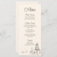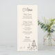 Carteira de noivado caprichoso e caprichoso. Este cartão de menu apresenta uma bela fonte escrita à mão num estilo divertido e divertido e tem texto totalmente personalizável. Na parte inferior do cardápio está uma ilustração desenhada manualmente de um bolo de casamento, bem como um monograma do casal. O cardápio vem num esquema de cor neutra de cinzas escuras em náusea.