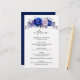 Elegante lavanda azul-lilás azul-real, menu de casamento floral com buquê elegante de flores azuis, Marinhos, prata, cor lilás, rosa e folhas verdes de eucalipto. Entre em contato comigo para obter ajuda sobre a personalização ou se você precisar de outro produto com este design.