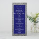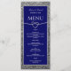 Descubra a combinação perfeita de sofisticação e encanto com nosso elegante menu de casamento. Apresentando um design moderno em prata brilhante e azul real, este menu mostra uma simples tipografia e um coração romântico de cordas, acrescentando um toque de graça ao seu dia especial.