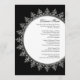 COLOR PALETTE: aspecto "metálico" preto, branco e prateado. COLLECTION: Correspondente ao menu de janto formal de recepção. Esta obra de arte original foi design para uma coleção de casamento moderna e contemporânea com estilo vintage. O design de ornamento de uma impressora barroca é renderizado em um filigre metálico prateado que tem uma aparência tridimensional. Ela é colocada no centro para uma sensação mais contemporânea. O plano de fundo é mostrado em preto, mas pode ser alterado para qualquer cor que você queira personalizar que corresponda à sua paleta de cores de casamento. MONOGRAM PLACEMENT: os monogramas podem necessitar de ser ligeiramente ajustados quando colocar as suas próprias iniciais neles. Você pode fazer isso facilmente usando o botão "personalizar isso" e indo para a próxima tela, o que lhe permitirá movê-los. Você também pode concluir seu convite e enviá-lo para nós usando a opção de e-mail e nós ficaremos felizes em ajustá-lo para você. OUTROS PRODUTOS: Existe um conjunto completo de produtos e pode ser criado em várias formas de cores. Se quiser que seja igual ao seu casamento, avise-nos por e-mail e ficaremos felizes em ajudá-lo. RECOMENDAÇÕES DE SELEÇÃO DE PAPEL: Além do papel padrão oferecido, ele seria requisitado com o Champagne ou Ice Metallic Papers, Silver Metallic ou qualquer um dos papéis premium.