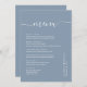 Menu Recepção de casamento Azul Dusty do Script Chic