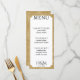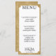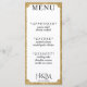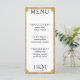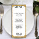 Placa de menu recepção de casamento branca e dourada com retângulo de canto côncavo. Tipografia elegante para um olhar caro sobre o preço do barato. Personalize a lista de refeições e os detalhes pessoais. Excelente para um moderno tema minimalista do casamento com um toque de estilo.
