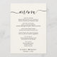 Janto elegante de recepção de casamento de creme leve com "menu" em um roteiro de caligrafia com picos, seu menu personalizado em uma simples tipografia moderna, seus primeiros nomes unidos por um coração e sua data de recepção.