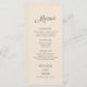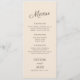 Menu de recepção de casamento moderno e na moda com fundo creme que pode ser personalizado para as suas próprias cores de casamento. Grande parte do texto é uma elegante letra cursiva de script. A cor da fonte e da fonte também são personalizáveis. Contacte-me se pretender obter assistência com o seu menu personalizado.