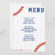 Menu vermelho branco e azul de baseball / recepção de casamento de softball com pinstripes. Personalize-o com os detalhes do evento. Excelente para fãs esportivos.