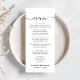 Menu de recepções de casamento moderna e gráfica com "menu" em um roteiro de caligrafia com alternâncias, seu menu personalizado em tipografia simples, seus primeiros nomes unidos por um coração e sua data de recepção.
