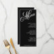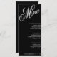 Menu de recepção de casamento preto e branco com fonte de script elegante. Personalize-o com os detalhes do evento.