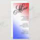 Menu de recepção de casamento verde branco e azul com fonte elegante de script. Personalize-o com os detalhes do evento.
