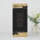 Menu de recepção de casamento de guitarra preto e dourado bloqueia duas cores. Personalize acrescentando o nome da noiva e do noivo e a data do aniversário de casamento. Excelente para amantes de música ou guitarristas.