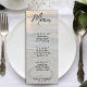 Menu de recepção de casamentos de praia com coração na areia. Excelente para um casamento de destino da ilha Caribe.