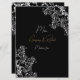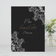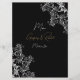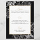 Placa de menu de Recepção de casamento Dourada e preta projetada com texto branco e dourado sobre fundo preto com sotaques brancos. O texto inclui: os primeiros nomes e a data de casamento da noiva e do noivo. O verso inclui: Seleções do Apetista, Entre Seleções e Seleções do Deserto. Para personalizar, basta inserir as seleções de menu na nossa modelo fácil, substituindo o texto de exemplo. Certifique-se de ver toda a Coleção de Casamentos Dourados e Pretos para cartões e acessórios correspondentes.