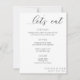 Isto...O cardápio de comer vamos é o design mínimo perfeito para um elegante café da manhã de casamento ou janto de recepção. Todas as menções, com exceção do "vamos", podem ser editadas.