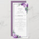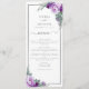 Este design apresenta elegantes peões e rosa-buds em tons de roxo e violeta juntamente com a vegetação tradicional do eucalipto foliage e uma falsa borda de folha prateada circundando seus detalhes do menu de janto de recepção de casamento. O fundo na frente é branco com roxo na parte de trás. Todo texto é facilmente personalizado usando os campos modelo fornecidos. Veja a coleção que acompanha os produtos complementares do pacote de casamento. Se você tiver uma pergunta sobre design ou quiser ver este design em outro produto, por favor, sinta-se à vontade para entrar em contato comigo em jschmidtdesignworks@gmail.com. Design © Judith Schmidt.