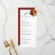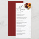 Menu de Recepção do Casamento outono Floral Sunflower Burgundy
