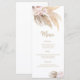 Nosso cartão de janto de casamento Boêmia de Pampas Grass é perfeito para um casamento elegante. O moderno design de bico rústico apresenta flores romáticas de aquarela escamoteadas em tons suaves de trigo, mauve, cor-de-rosa-pincel e branco-creme com sotaques de grama-pampas. Este menu pode ser usado para recepção de casamento, janto de ensaio ou qualquer evento.