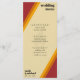 Menu de recepção de casamento vermelho, laranja e castanho bronzeado com canto com faixa. Personalize adicionando sua própria lista de refeições, os nomes da noiva e do noivo e a data do aniversário de casamento.