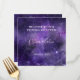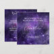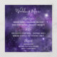 Manu de Recepção de casamento Roxo Estrela. Este Menu de Recepção de casamento romântico apresenta um céu noturno roxo profundo cheio de estrelas brilhantes brancas em tons claros e escuros de roxo e branco. O texto do lado frontal inclui: Bem-vindo ao nosso Casamento, os Nomes e a Data de Casamento da Noiva e do Groom. O texto do lado inverso inclui: Seleção de Apetista, Entre e Deserto. Para personalizar este cartão, basta inserir os detalhes do menu no nosso modelo fácil, substituindo o texto de exemplo. Não se esqueça de ver as peças correspondentes a esta Coleção de Casamentos Roxos de Estrela.