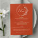 Menu Recepção de casamento Vermelha de Cobre com Quadro