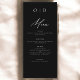 Apresentando nosso Menu de Casamento Moderno Minimalista Preto e Branco, uma adição refinada e elegante à sua capa de casamento que equilibra perfeitamente o design contemporâneo com a sofisticação do eterno. Criados com precisão e olho para a estética minimalista, esses menus são projetados para elevar sua experiência de jantar e deixar uma impressão duradoura em seus convidados. O contraste flagrante entre preto e branco exude um senso de modernidade e versatilidade, fazer que esses menus sejam adequados para casamentos de todos os temas e paletas coloridas. A elegante tipografia e linhas limpas garantem uma apresentação visualmente atraente que se harmoniza perfeitamente com a sua decoração geral. Nossos menus de casamento não são apenas visualmente cativantes, mas também altamente funcionais. Impressos em estoque de cartão premium, eles fornecem uma presença resistente e elegante em cada lugar. Com amplo espaço para mostrar suas escolhas de menus elegantes, essas cartas servem tanto como guias práticos quanto elementos decorativos. Personalize cada menu com as suas seleções de menu exclusivas, a data do seu dia especial e quaisquer outros detalhes significativos. Quer você esteja planejando um banquete ou uma recepção íntima, nossos Menus de Casamento Moderno Minimalista Negro e Branco irão melhorar a experiência de jantar e motivar a atenção de seus convidados. Escolha esta coleção para dar um tom de sofisticação moderna e atenção cuidadosa aos detalhes no seu casamento. O Menu de Casamento Moderno Minimalista Negro e Branco é um símbolo do seu gosto refinado, refletindo a essência de sua celebração de uma forma elegante e duradoura. Elevem sua experiência de jantar de casamento e façam uma impressão duradoura com esses menus refinados que incorporam a arte do minimalismo e da sofisticação.