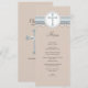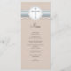 Um azul de aço bonito e um design tan do pérola de falso das características do esquema de cores e o transversal neste cartão do menu para sua recepção religiosa da celebração.