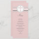 Um falso cor-de-rosa e cinzento bonito das características do esquema de cores ata e um design transversal bonito neste cartão bonito do menu para sua recepção religiosa da celebração.