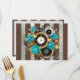 Relógio antigo e patenteado, adornado com joias, mãos de ouro e algarismos latinos com rosa de turquesa sobre fundo castanho e listrado. Estilo Steampunk.