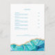 Outro menu de restaurante elegante do Blue Sands Studio. Este menu moderno apresenta um design de aquarela azul aqua com detalhes de brilho dourado falso. Lembrando a pedra de ágata. Fontes serif clássicas são combinadas com caligrafia fluida. Modelo facilmente editável para inserir suas seções e itens de menu. Organizado em Entradas, Acompanhamentos, Sopa & Salada e Sobremesa. Se precisar de ajuda ou conselho, envie-me uma mensagem Zazzle.