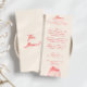 Um retro fedorento, moderno menu janto de casamento vermelho e creme. Que apresenta modelo design de chic de fundo leitoso cremoso e tipografia escrita com mão vermelha. Com o prato desenhado à mão na parte inferior. Perfeito e compatível com toda a suíte.