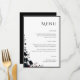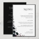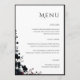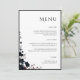 Elegant dark floral wedding menu featuring a refined minimalist layout with a delicate botanical accent and clean editorial typography. This sophisticated menu design blends soft neutral tones with deep moody florals, creating a timeless and cohesive look for your reception table. Perfect for showcasing your courses with clarity and style while complementing a romantic, modern, or dark floral wedding aesthetic.