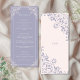 Envie um cartão de casamento tradicional e clássico com estes Menus Elegantes Lilac Franceses Românticos que exudem a combinação perfeita do design ornamentado com uma estética quic litorânea e chique com sotaques cor-de-rosa. O design versátil é perfeito para o casal que cria um tema romântico com uma combinação clássica de roteiro e tipografia e um elemento gráfico ligeiramente retrô-vintage. Projetado pelo Simple Desert Design Studio. Envie-nos uma mensagem para cores mais personalizadas que correspondam à sua matiz específica.