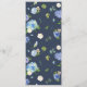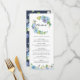 Cartão de menu floral branco e elegante perfeito para casamentos, chás de fraldas, chás de panela, festas de jardim, graduações, aniversários e eventos semelhantes. Este cartão de menu floral contém hífenes de cor d'água azul e púrpura, pedras e folhagem.