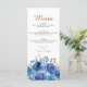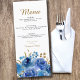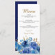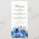 Rosa azul e Menu Folha Dourada que você pode personalizar para um janto de 3 cursos ou personalizar como desejar. Design floral elegante com flores de rosa de de aquarela e folhas em tons de azul e ouro. Design moderno para Quinceanera, Casamento, Janto de ensaio ou outra ocasião especial. Por favor, navegue na minha Coleção de Folhas Azul e Dourada para obter produtos correspondentes ou envie-me uma mensagem para criar os modelos de que necessita.